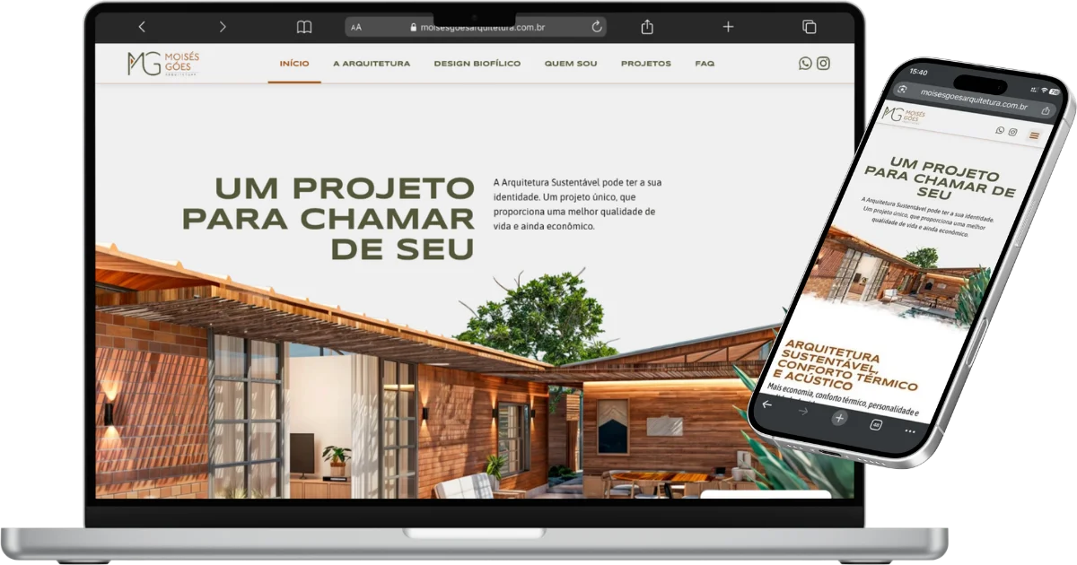 For the architect Moises Góes, passionate about creating spaces that go beyond functionality, I designed a website that conveyed its essence and its projects. The site works as a personal portfolio, focusing on attracting customers and commercial presentation of their work.